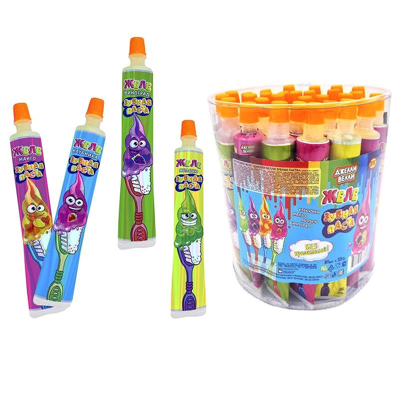 Фруктовое желе Джелли Велли Зубная Паста 1кор*8бл*30шт,55 гр.