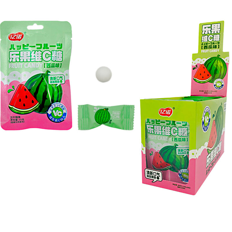 Фруктовые конфеты с витамином С со вкусом арбуза Yinuo 1кор*12бл*20шт, 15гр