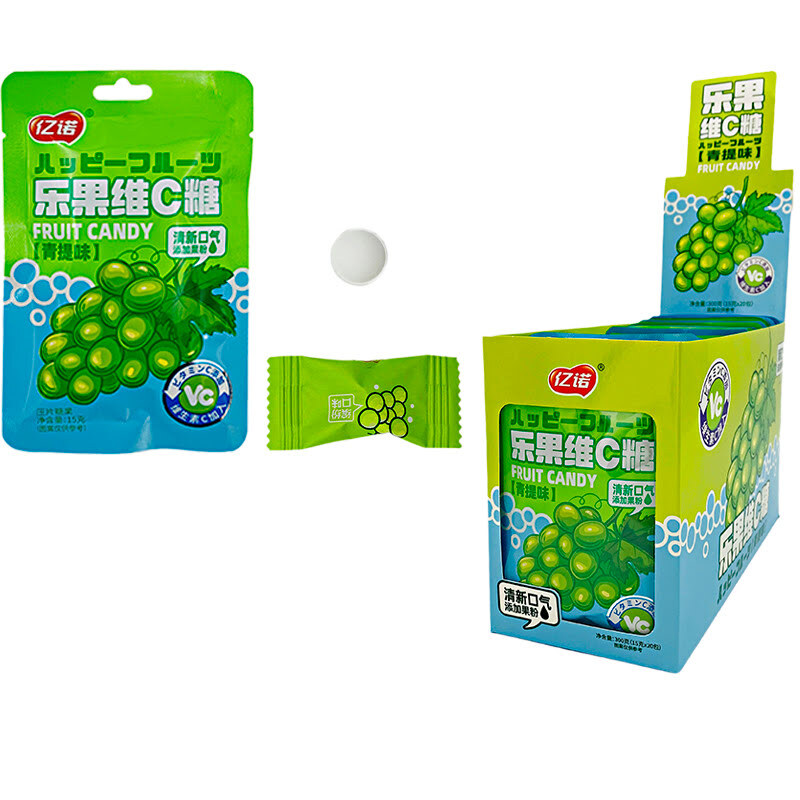Фруктовые конфеты с витамином С со вкусом винограда Yinuo 1кор*12бл*20шт, 15гр