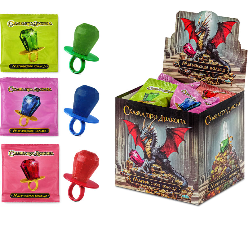 Карамель фигурная Сказка про дракона со вкусом яблоко, ягода, клубника 1кор*12бл*30шт, 10гр