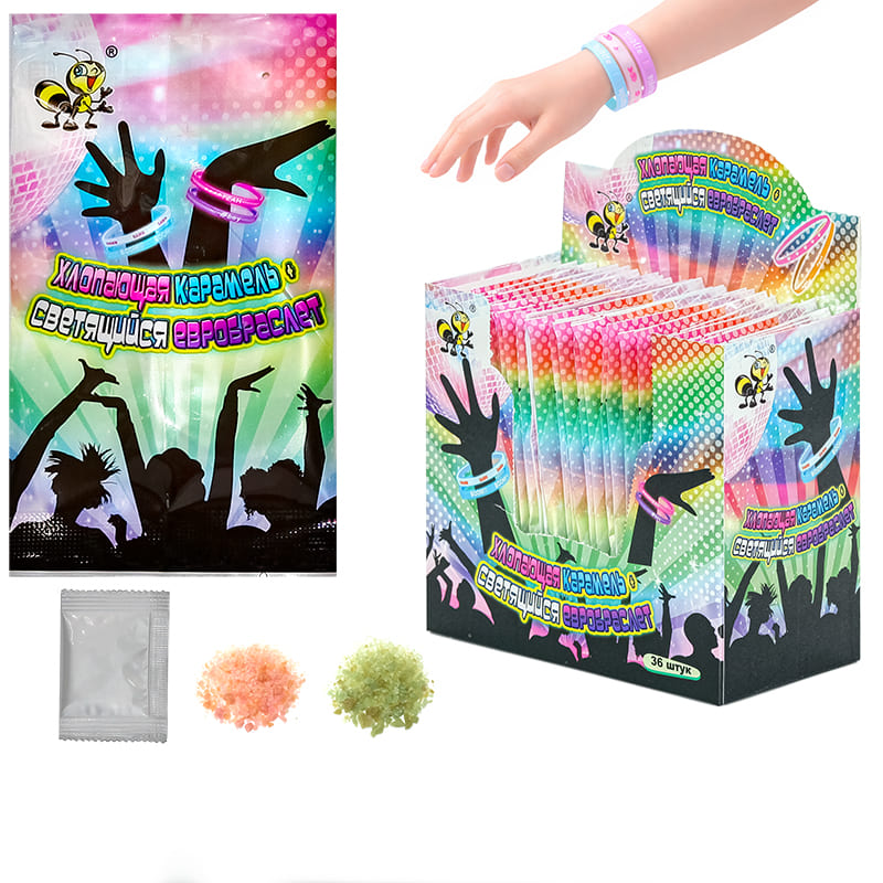Карамель хлопающая Светящийся Евробраслет 1кор*12бл*36шт, 1гр