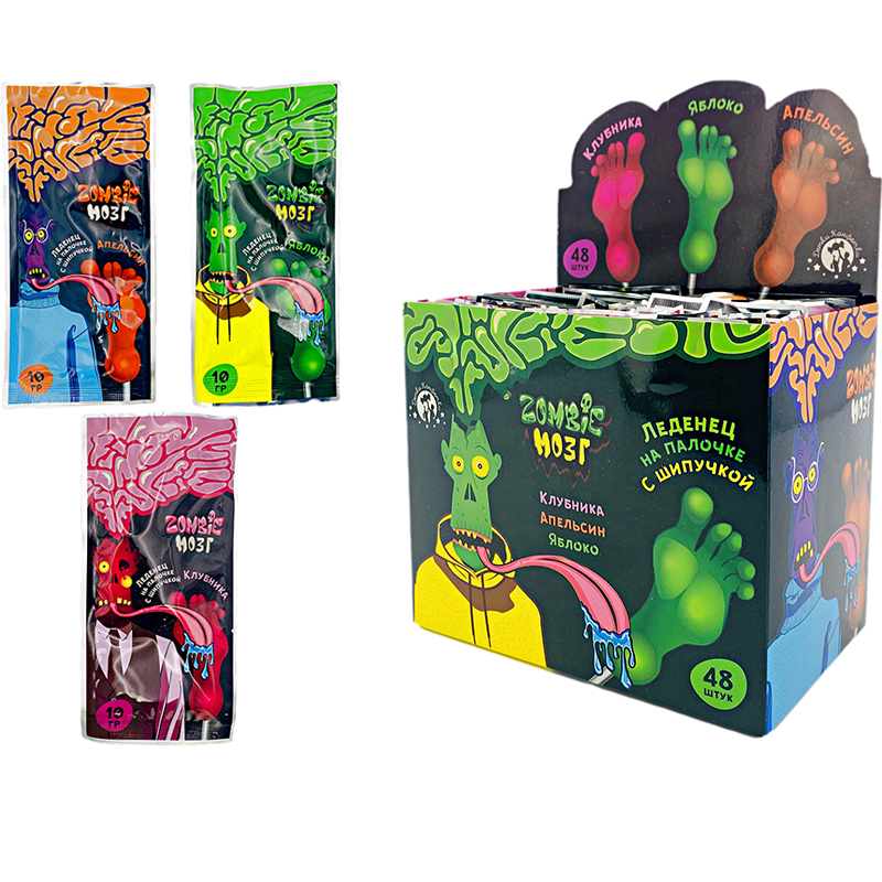 Карамель Zombie Мозг кислая пятка 1кор*12бл*48шт, 10гр