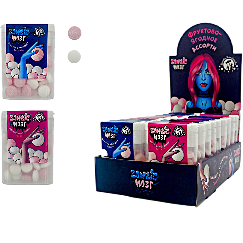 Конфета ZOMBIE МОЗГ ассорти (ВАМПИРШИ) 1кор*24бл*18шт, 14гр