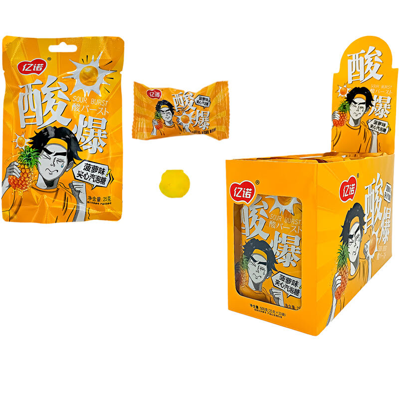 Конфеты кислые со вкусом ананаса Yinuo 1кор*12бл*20шт, 25гр