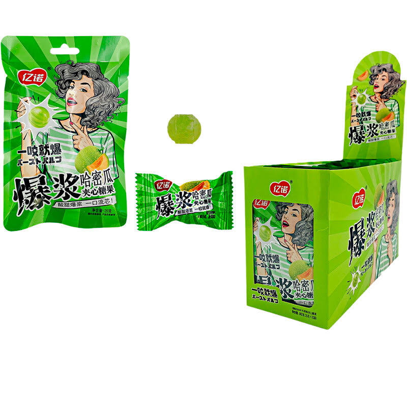 Конфеты взрывные с начинкой дыня Yinuo 1кор*12бл*20шт, 25гр