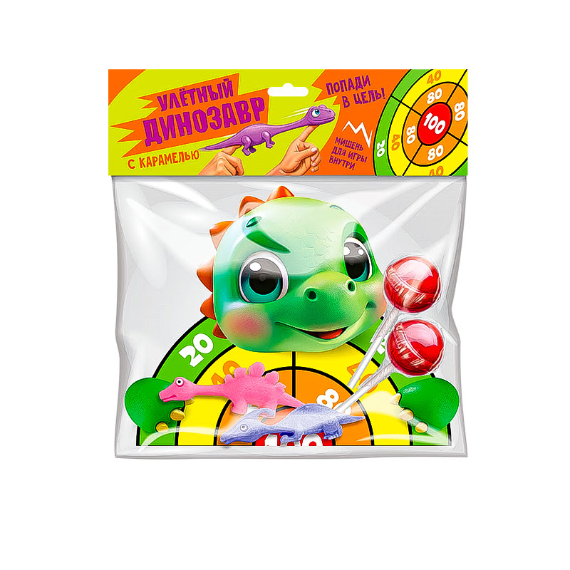 КОНФИТРЕЙД ДИНО ПАРК Карамель на палочке с игрушкой и тиром 1кор*3бл*10шт, 22 гр