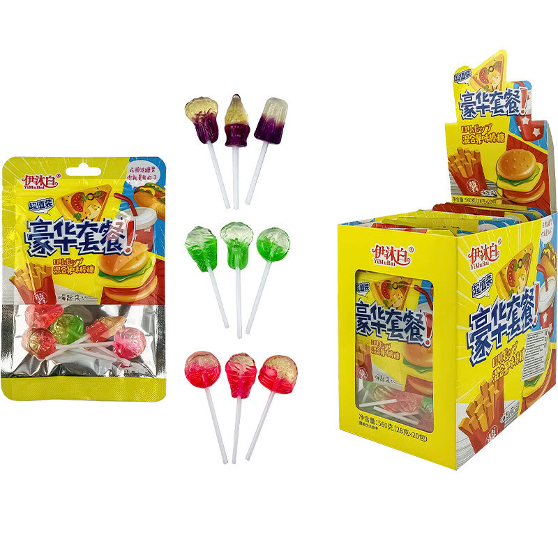 Леденцы на палочке фаст фуд Yimubai 1кор*12бл*20шт, 28г