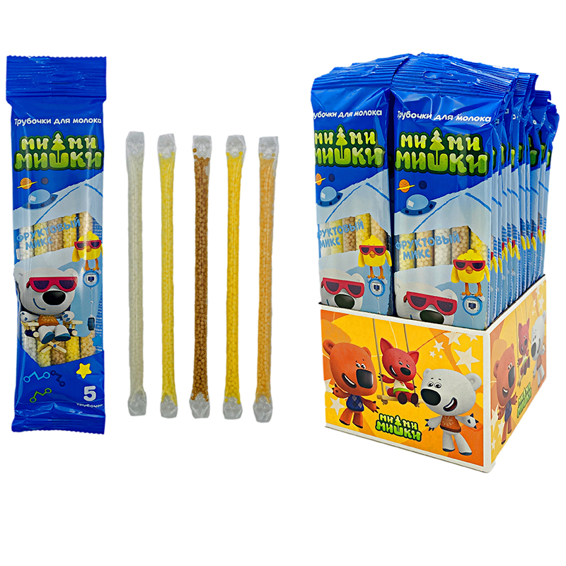 Трубочка для молока Ми-Ми-Мишки фруктовый микс (кокос, персик, манго, банан, карамель) 1кор*6бл*24шт, 30гр