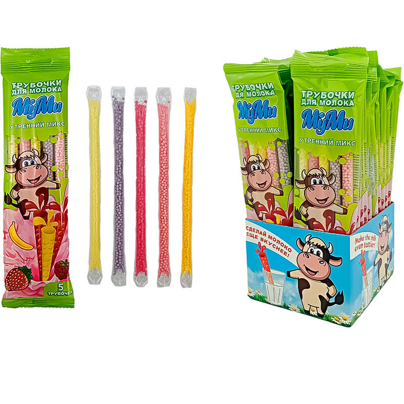 Трубочка для молока МУМИ утренний микс (клубника, малина, дыня, ежевика, банан) 1кор*6бл*24шт, 30гр