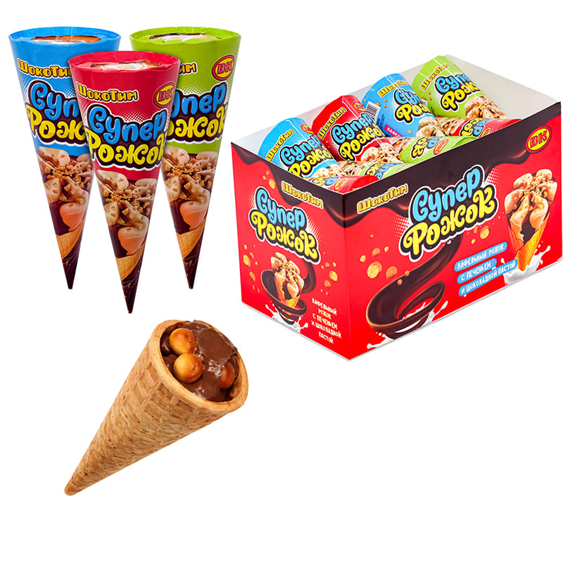 Вафельный рожок с печеньем и шоколадной пастой Шокотим Супер рожок 1кор*12бл*24шт, 16гр