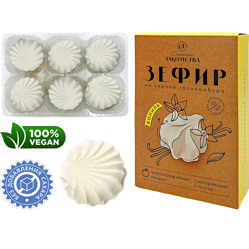 Зефир Старинные Лакомства на сиропе топинамбура со вкусом ваниль 1кор*1бл*12шт, 200гр