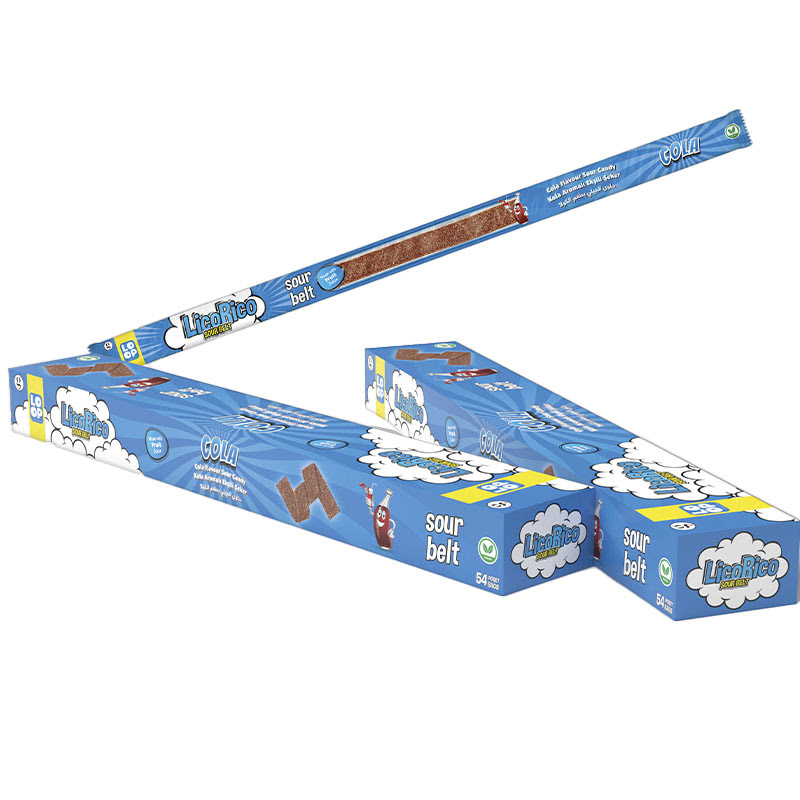 Желейные конфеты LicoRiko кислые ремешки Кола 1кор*12бл*54шт, 15г