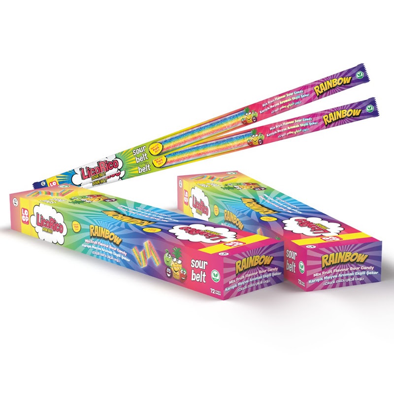 Желейные конфеты LicoRiko кислые ремешки радуга 1кор*6бл*72шт, 15г
