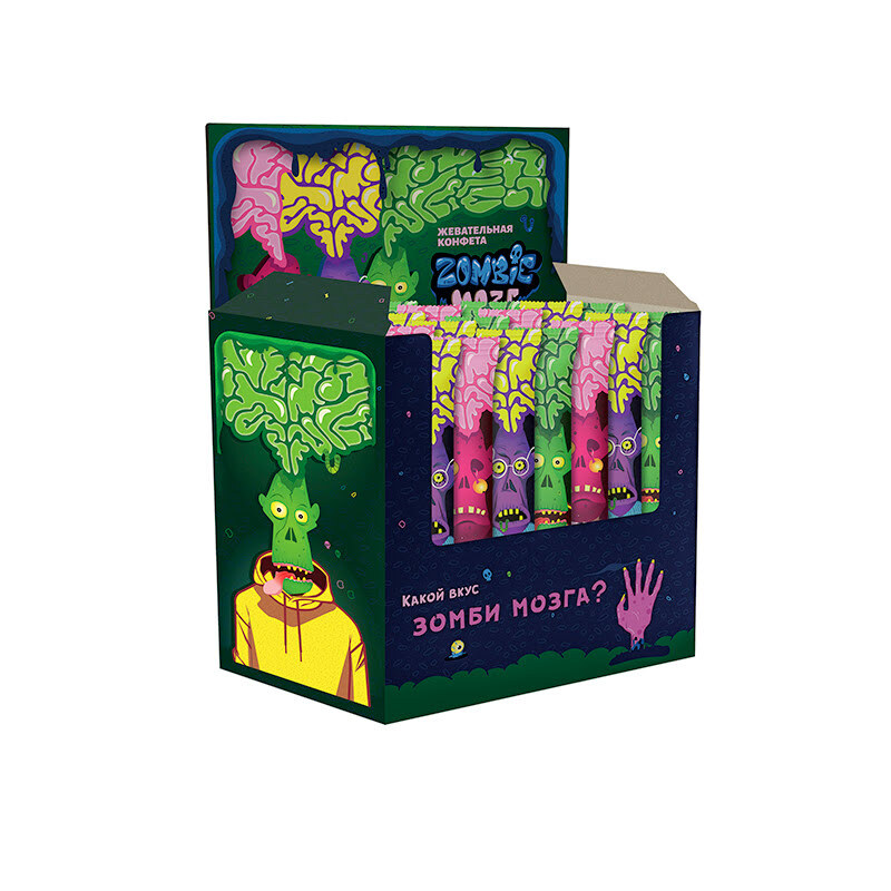 Жевательная конфета Zoмbie мозг Ассорти (клуб, манго, тутти) 1кор*12бл*75шт, 18гр
