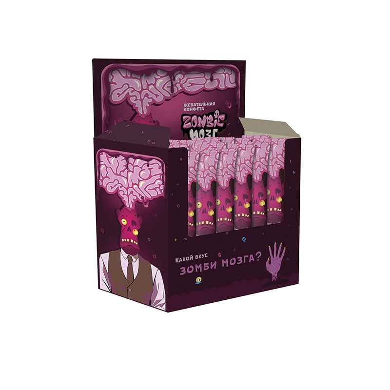 Жевательная конфета Zombie мозг со вкусом клубники 1кор*12бл*75шт, 18гр