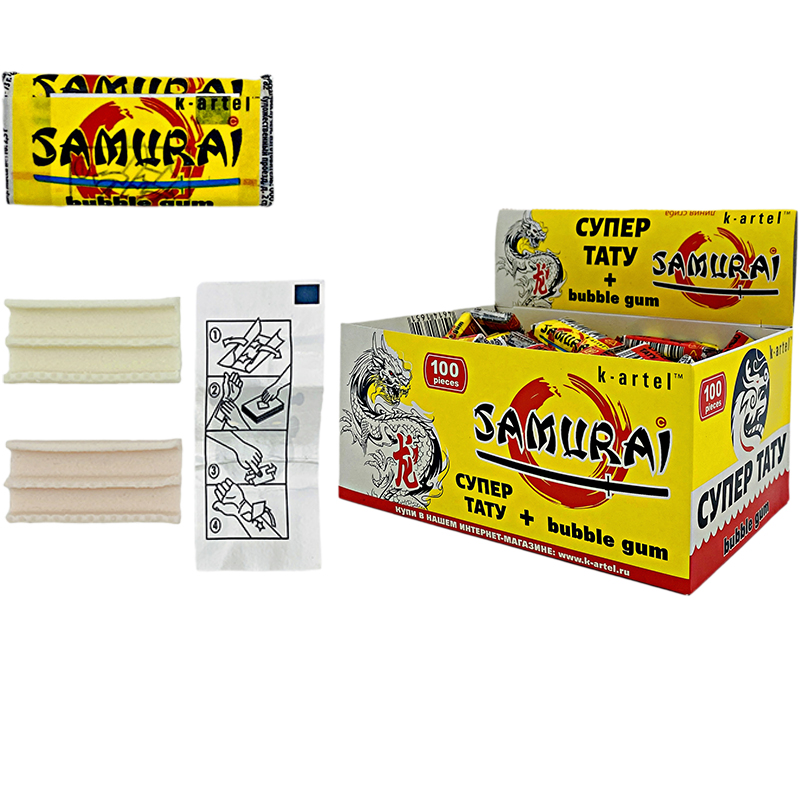 Жевательная резинка Samurai с тату со вкусом тутти-фрутти 1кор*10бл*100шт, 2,5гр