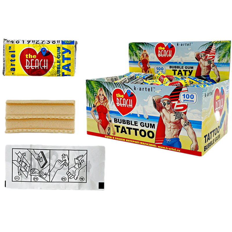 Жевательная резинка The Beach с тату со вкусом тутти-фрутти и мяты 1кор*10бл*100шт, 2,5гр