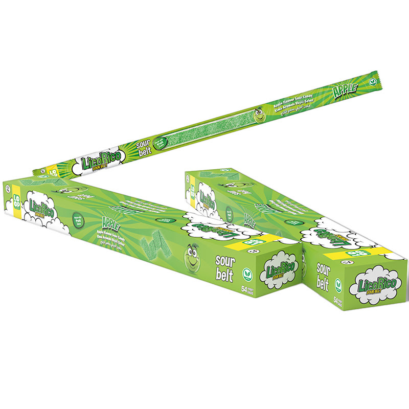 Жевательный мармелад LicoRiko кислые ремешки Яблоко 1кор*12бл*54шт, 15г