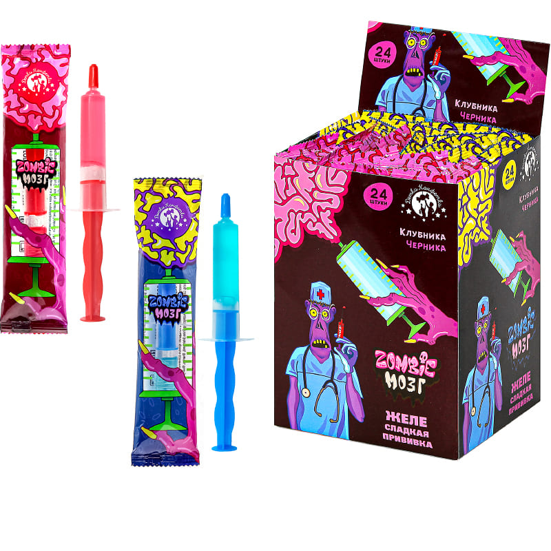 Жидкая карамель со вкусами клубники и черники «Zombie Мозг» сладкая прививка 1кор*12бл*24шт, 8гр